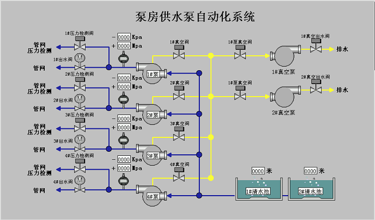 通過(guò)西門(mén)子SMART200PLC控制每個(gè)濾池的自動(dòng)工作,由工業(yè)交換機(jī)組成以太網(wǎng)系統(tǒng)。主控制室由研華工控機(jī)安裝力控網(wǎng)絡(luò)版組態(tài)軟件,實(shí)際對(duì)各個(gè)濾池工作狀態(tài)的遠(yuǎn)程監(jiān)控。計(jì)時(shí)反沖、定時(shí)反沖相結(jié)合,保證水廠產(chǎn)水的各項(xiàng)需要,生產(chǎn)數(shù)據(jù)設(shè)定好后,無(wú)需人為參與。